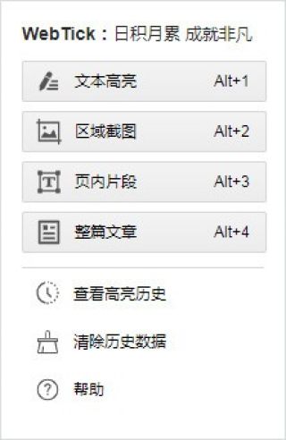 文本标注的快捷方式为“ALT+1”,连续点击可以切换标记笔的颜色;区域截图标注快捷方式为“ALT+2”,同样连续点击可以切换截图标色;页内片段快捷方式为ALT+3;整篇文章快捷方式为ALT+4。