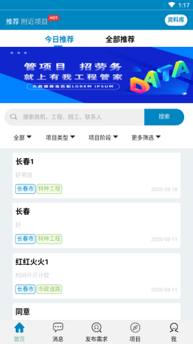 具有招工、找活、项目、设备租赁、材料买卖信息发布功能,