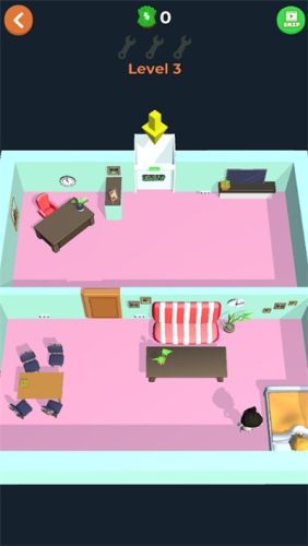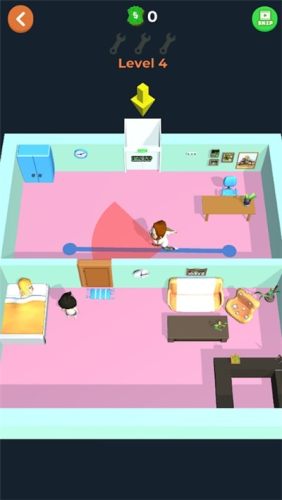1、精致的3d画面,在房间中奔跑不要被男人抓到