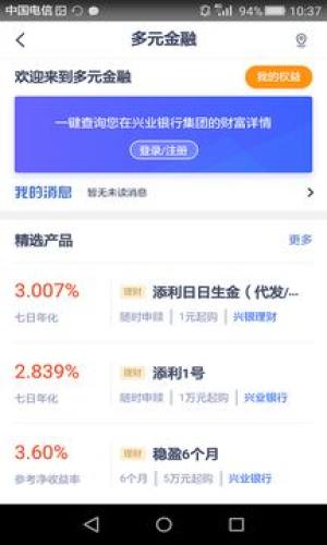 兴业信用卡、现金理财、稳健理财等综合金融业务。