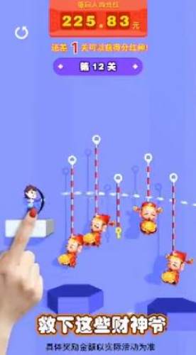 欢乐射手红包版,一款非常有趣的闯关救援游戏。在这里玩家需要调整角度,弓箭射击绳索,不断救下更多财神爷,解救越多红包越多,还有分红财神等你来救,海量红包拿不停。