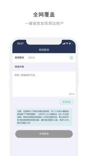 5、【短信群发】:熊猫开单APP可以快速选择号码,一键短信群发!只要搜索精准客源一键群发,即可方便高效的找到客源。快速的集客、锁客营销工具,让你的广告不受地域限制遍布全国。