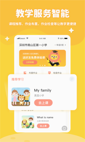 叮咚课堂教师端app,少儿英语AI课堂教师版,服务学校教师的教学工具,支持作业发布、检查、通知等功能,智能分析学生学习报告,帮助教师掌握学生学习状况,提高教学质量。