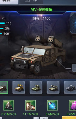 采矿车:采集用的,前期需要训练几万的采矿车,用来采集资源,不适合用来作战。