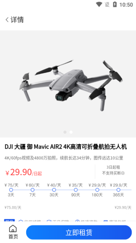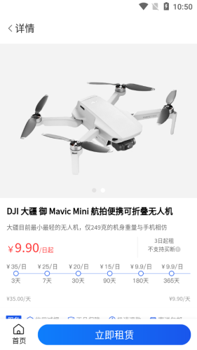 - 正品全新:大疆无人机租赁、相机云台等产品均为官方正品全新,每天仅需十几块的成本便可以享受最新的潮流科技