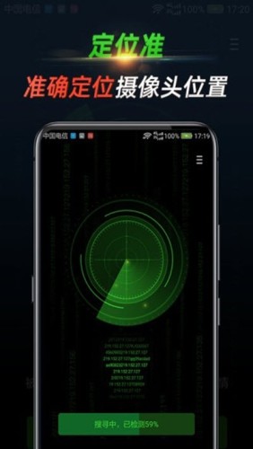 针孔查app,隐藏摄像头搜索工具。软件可以通过内置的检测电波查看周围有没有隐藏的摄像头,支持红点显示,快速检测反偷拍,随时随地保证安全隐私。