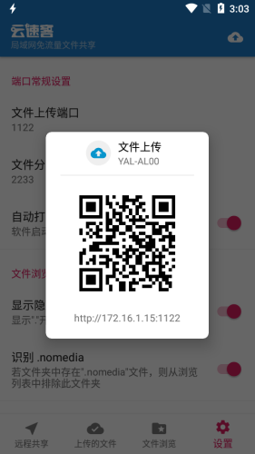 2.局域网中的任何设备浏览器都会在应用程序上输入URL,然后进入网页以上传或下载文件。