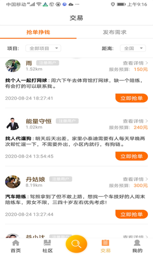 申请虚拟店铺,上架服务项目供用户选购,或者对用户发布的需求进行抢单。