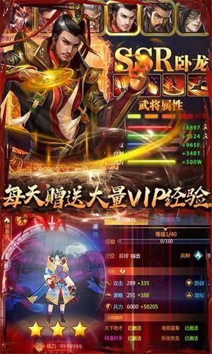 每个武将都有专属的技能,可以不断升级属性,成就极限战力!