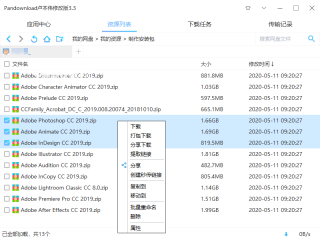 登录后,在资源列表中能看到自己软件的,如果要下载自己网盘里的文件,直接右键选择即可,也可以批量下载。