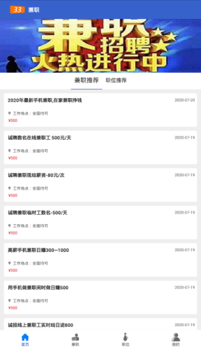 33兼职网app平台可以提供大家兼职岗位,最全面的兼职任务都在这里。求职、找工作都可以,最贴心有保障的兼职赚钱软件就在33兼职网。