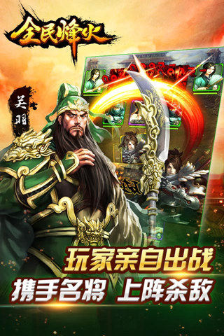 《全民烽火》是一款全新的策略卡牌手游,这款游戏以中华五千年重大历史事件为依据,加入了项羽、李世民、四大美女等上百名将,玩家可将这些武将招入麾下共同协力抵抗异族。