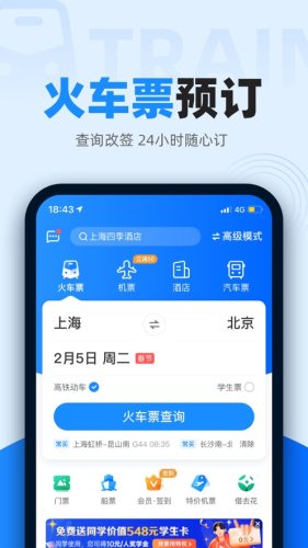 节假日火车票预约抢票!低价机票酒店预订!