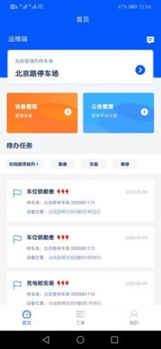 飐抶派单app,停车场运维管理系统。软件拥有各种运维事务功能,帮助工作人员线上处理办公,包括停车场车位管理、充电桩管理等,提升工作效率。