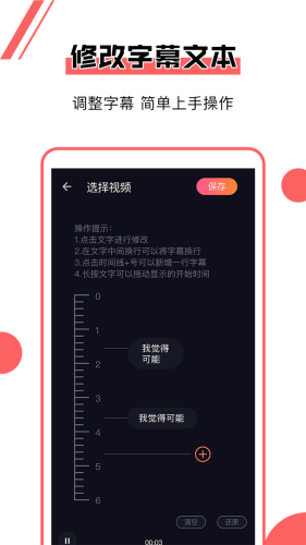 支持修改字幕文本,调整或增加字幕文本,简单上手操作,无束缚.
