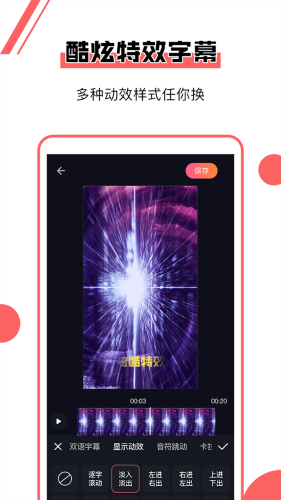 动画卡通、自定义等多种视频背景任你切换,增加超强视觉,丰富多彩的背景搭配特效字幕,实现精彩大片.