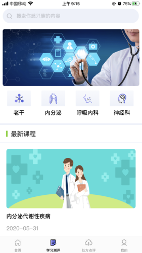 3、课程学习,包括视频课程,医学文章,自我答题评测