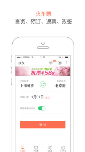 准确翔实火车票时刻、车次、余票一站式查询预订;