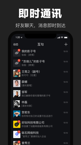 互勾app安卓版,一款适用于工作、校园、家庭等多种场合的即时通讯工具,支持个人动态发布、群内私聊、多号互联、角色管理等功能,与好友即时沟通,随时随地发送消息。