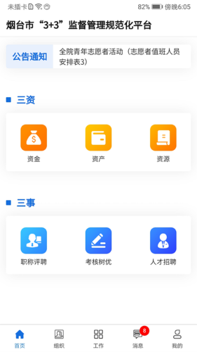 3+3阳光监督app,烟台市监督管理规范平台。软件通过对资金、资产、资源三资以及职称评聘、考核树优、人才招聘三事方面对烟台农科院进行全方位的权力监管,保证公正公开透明。