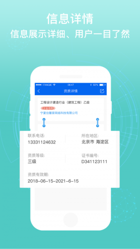 1、资质合作:全国各行各业企业资质信息随心查看,在线一键联系咨询合作。