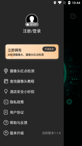 明察app,手机上的反偷拍利器。软件可以监测网络中摄像机、网络摄像头、针孔摄像头、监控设备等电波,实时反馈,明确描述硬件类型,从而有效保护您的隐私安全。