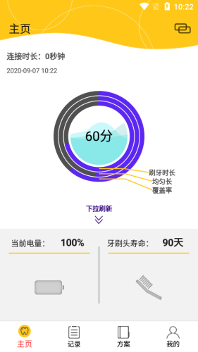并可以离线记录用户的刷牙时间、时长和模式方案(可保存一周),并生成曲线图以供参考。