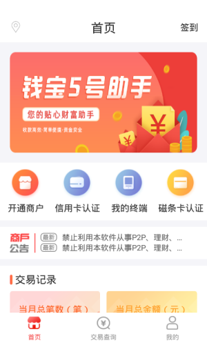钱宝5号助手App,一款商户收银软件,尊重源于您的努力,是您的贴心财富助手,其拥有收款高效,简单便捷,资金安全等特点,在此即可开通商户,进行信用卡认证,管理我的终端,认证磁条卡等。