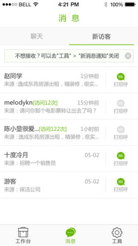 实时追踪访客,一键完成“打招呼”;及时发现潜在客户,主动出击。