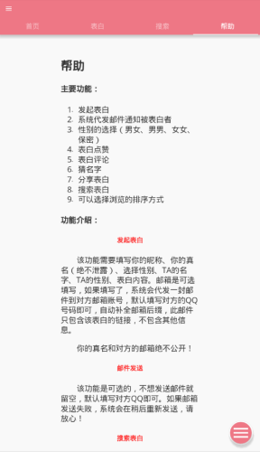 2、帮助那些不知道如何开口表白的用户勇敢的迈出第一步,让大家可以通过这个软件提升脱单几率。