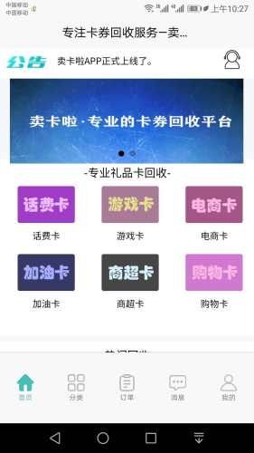 卖卡啦app是款专注卡券回收服务的在线交易平台,支持电话卡、游戏卡、加油卡、购物卡、商超卡等多种类型礼品卡的回收,交易安全,内容丰富,让卡券回收更放心。
