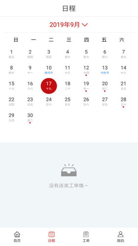 日历展示每一天的工单及状态,方便用户更直观的了解所拥有的工单,及状态。