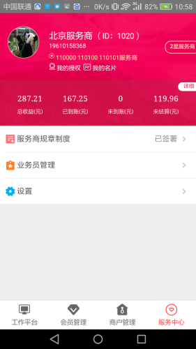 伴聚服务商App,由卓越质胜(北京)科技发展有限公司开发,其提供了工作平台、会员管理、商户管理以及服务中心等功能,帮助服务商更好的实现日常消费积攒养老金工作。