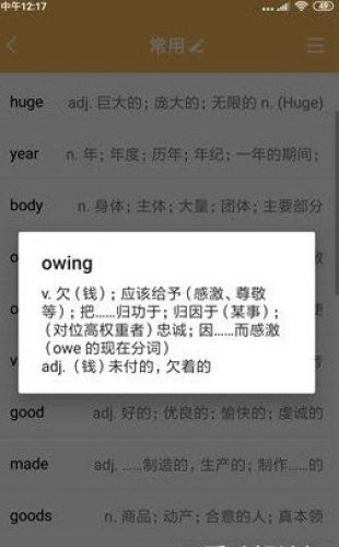 下载金山词霸手机版50.9M5389人在玩金山词霸是一款经典、权威的词典软件。经过16年锤炼,今天已经是上亿用户的必备选择。它最大的亮点是海量权威的词典内容,收录整合了141本版权词典,30余万真人语音,17个场景2000组常用对话,完整收录《柯林斯COBUILD高阶英汉双解学习词典》。