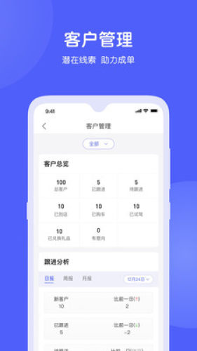 客户管理:门店客户统计,单客户信息查看、跟进;
