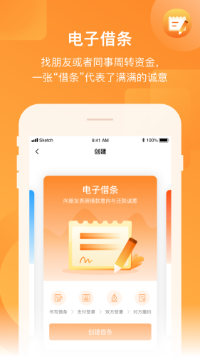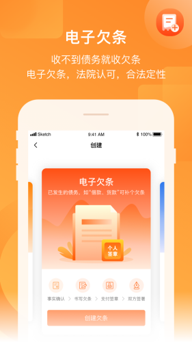 签个条app,电子债务合同签署平台。软件为借债双方提供安全、合法的电子债务合同签署平台,帮助借贷双方借债阳光化、线上化、合法化,解决借钱难,还钱难的问题。