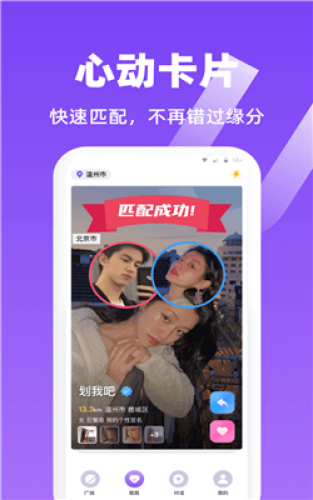 向右滑喜欢,向左滑无感,翻动虾菇推送的卡片, 寻找与你最近的缘分,快速匹配,不再错过。