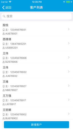 5、客户管理:管理自己的客户,添加、查看客户信息。