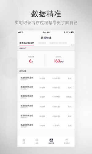 数据管理:全面展示用户的治疗数据和记录。治疗历程和成果,一目了然。