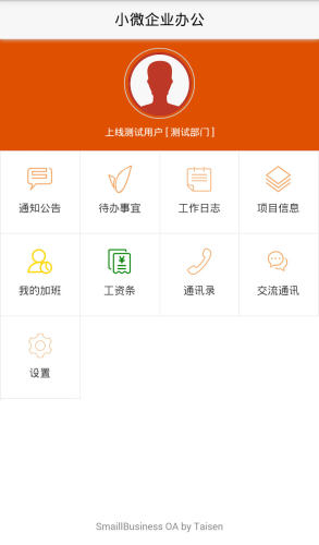 本应用提供了通知公告、待办事宜、工作日志、加班记录的录入与审核、工资条查看(加密数据和加密传输)、交流通讯等功能;