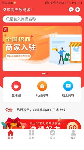 非常礼响,分为线上商城及线下生活圈两个板块。