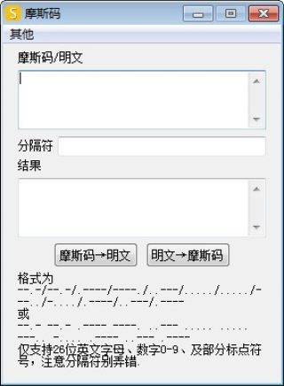摩斯码加密解密工具,摩斯码软件程序,单文件程序,功能简单直观,就是给摩斯码进行加密解密操作,本摩斯码加密规则是按照最新的官方标准进行,当然,如果某摩斯码进行了二段处理加密则无法获得正确的解码效果。本次带来摩斯码工具资源PC端下载,需要对标准摩斯码进行加密解密操作的朋友们不妨试试吧!