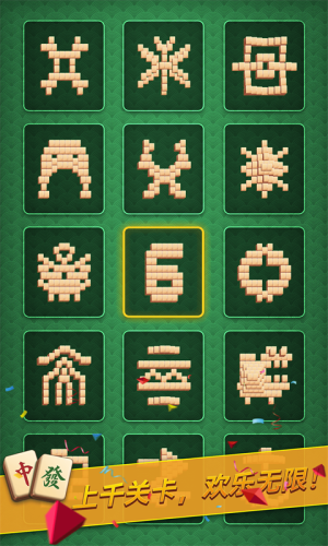 找出每对相同的麻将图案,并消除这些麻将。只有图案相同而且没有其他麻将阻挡的麻将才能被消除,如果麻将的左方及右方同时有其它麻将,或者上方有其它麻将,则被阻挡而不能消除。