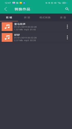 陈马音乐剪辑app是款具备音频剪辑、拼接、格式转换、录音等多种功能,帮助用户随时编辑手机内的音频文件,使用简单,所有功能完全免费,随时享受优质的音频管理功能。