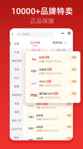 涵盖服装鞋靴、箱包配饰、家居家纺、美妆个护、食品家电等品类;