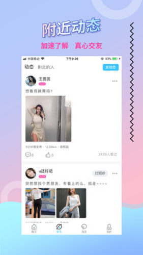 【附近动态】浏览附近动态,发现同城缘分。