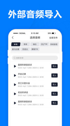 ● 自动识别任意视频或语音备忘录或者手机本地文件,转写成文字文本;