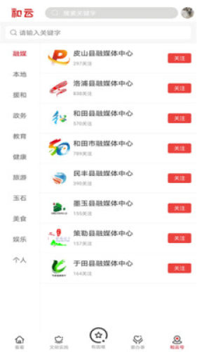 主要功能:资讯、推荐、新闻稿件阅读、分享;和田地区本地电视直播、新闻广播;提供各类便民服务,可通过和云APP软件可以实现。