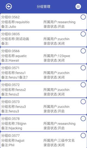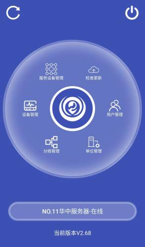 2.用户选择服务器进行登录,可操作用户管理、单位管理、分组管理、设备管理、服务设备管理等。