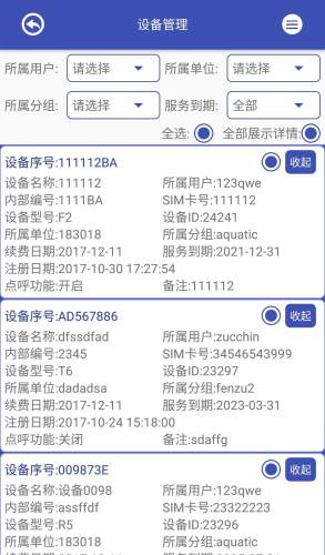 3.可以对宝蓝设备进行添加、修改、删除、查找、续费、导出、设置分组、设置好友等功能。